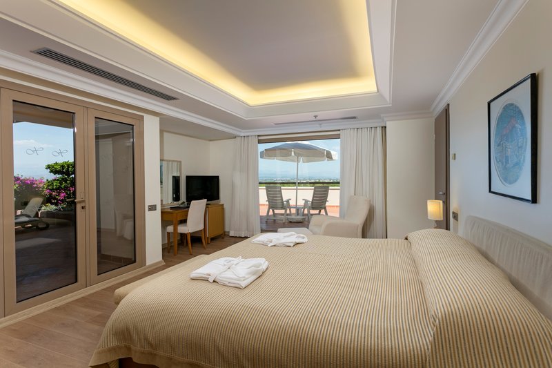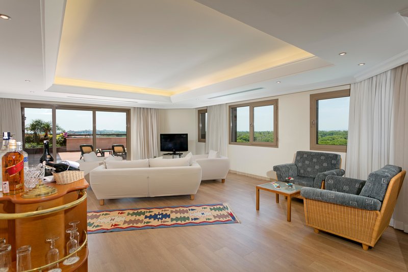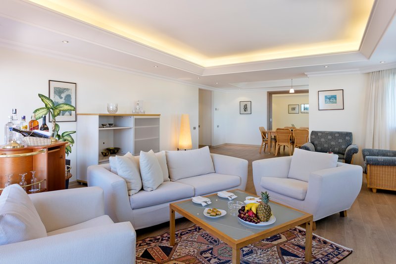 - Zimmerausstattung: Verbindungstüre, kombinierter Wohn-Schlaf-Raum, Wasserkocher, Telefon, Haartrockner, Minibar (inklusive), Zimmersafe (inklusive), Bademantel (inklusive), WLAN im Zimmer (inklusive), Fernseher (inklusive), Klimaanlage (inklusive, saisonal verfügbar)