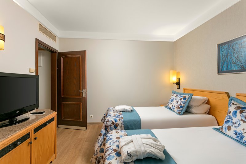 - Zimmerausstattung: Verbindungstüre, Wasserkocher, Telefon, Haartrockner, Minibar (inklusive), Zimmersafe (inklusive), Bademantel (inklusive), WLAN im Zimmer (inklusive), Fernseher (inklusive), Klimaanlage (inklusive, saisonal verfügbar)
