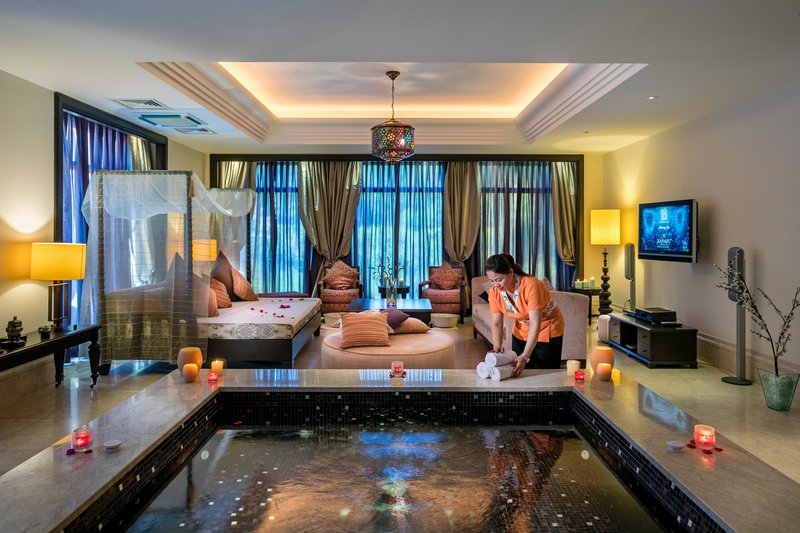 - Zimmerausstattung: Sitzecke, Wasserkocher, Telefon, Haartrockner, Minibar (inklusive), Zimmersafe (inklusive), Bademantel (inklusive), WLAN im Zimmer (inklusive), Fernseher (inklusive), Klimaanlage (inklusive, saisonal verfügbar)