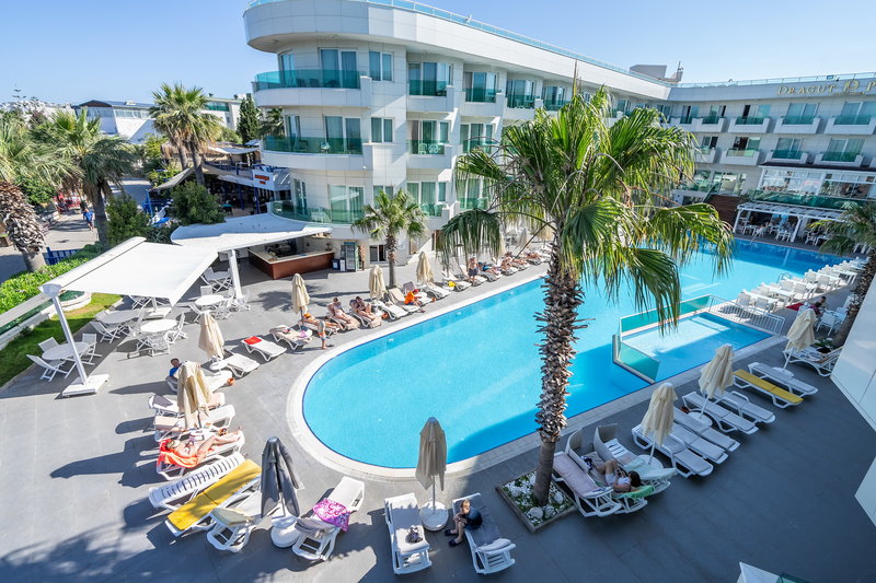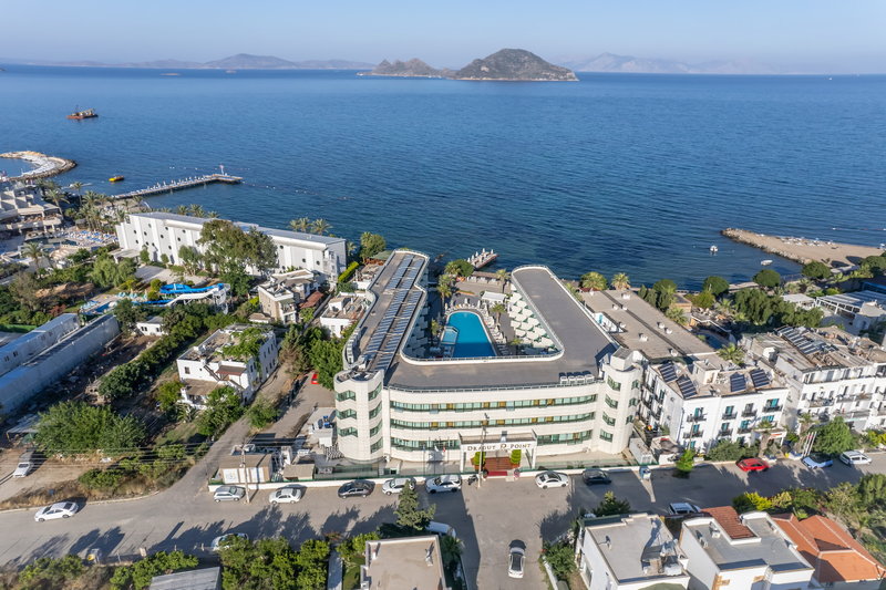 Rund 30 m vom Sand-/Kiesstrand entfernt liegt das Hotel Dragut Point South Hotel. Am Strand sind Sonnenschirme und Sonnenliegen kostenlos verfügbar. Die Stadt Bodrum ist ca. 20 km entfernt. Folgende Sehenswürdigkeiten sind vom Hotel aus erreichbar: Dydma (ca. 135 km), Pamukkale (ca. 255 km) und Ephesus. Für Mobilität sorgt ein Mietwagen-Verleih. Der Flughafen (BJV) ist ca. 60 km entfernt. Ein weiterer Flughafen (DLM) liegt in etwa 220 km Entfernung.