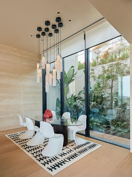 5 spální, obývacia izba s jedálenským kútom a kuchynským kútom, šatňa, parný kúpeľ, sauna, fitness zóna, rozložené na 3 poschodiach