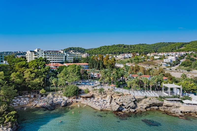 Poloha: Hotel sa nachádza priamo na piesočnatej a kamienkovej pláži v dovolenkovej oblasti Incekum-Avsallar, cca 22 km od mesta Alanya a cca 95 km od letiska Antalya. Taxi a minibusové spojenie do okolitých miest.