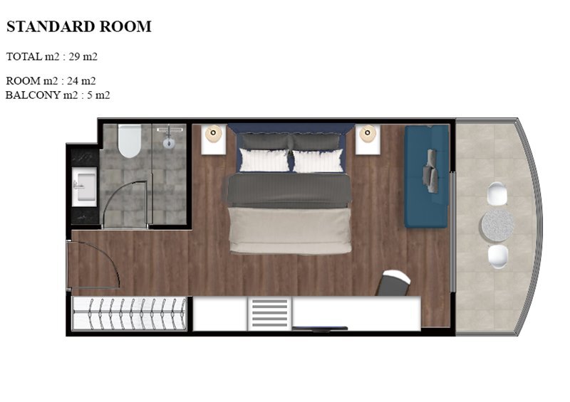 Minibar sa dopĺňa denne, VIP vybavenie izby a kúpeľne, príslušenstvo na prípravu čaju a kávy