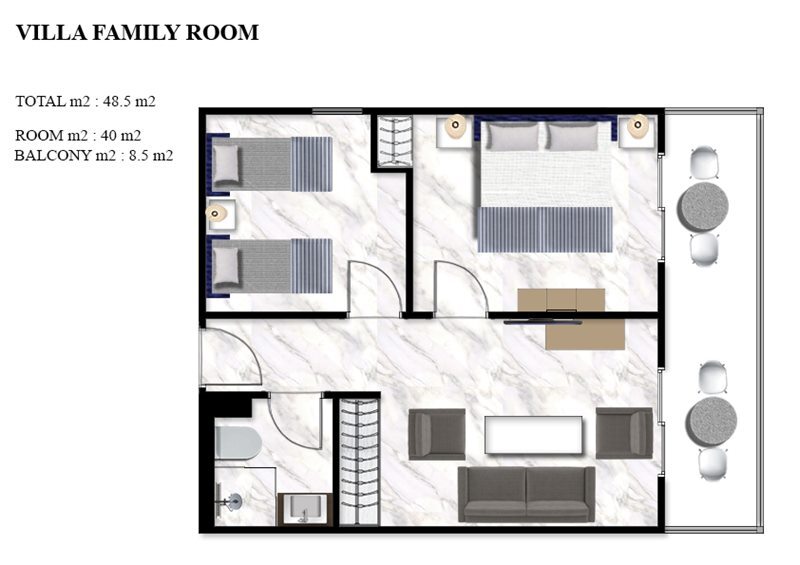 Villa Standart Zimmer 2 Erw..Villa Famillie Zimmer 4 +1 Baby 2 Schlafzimmer,1 Badezimmer.