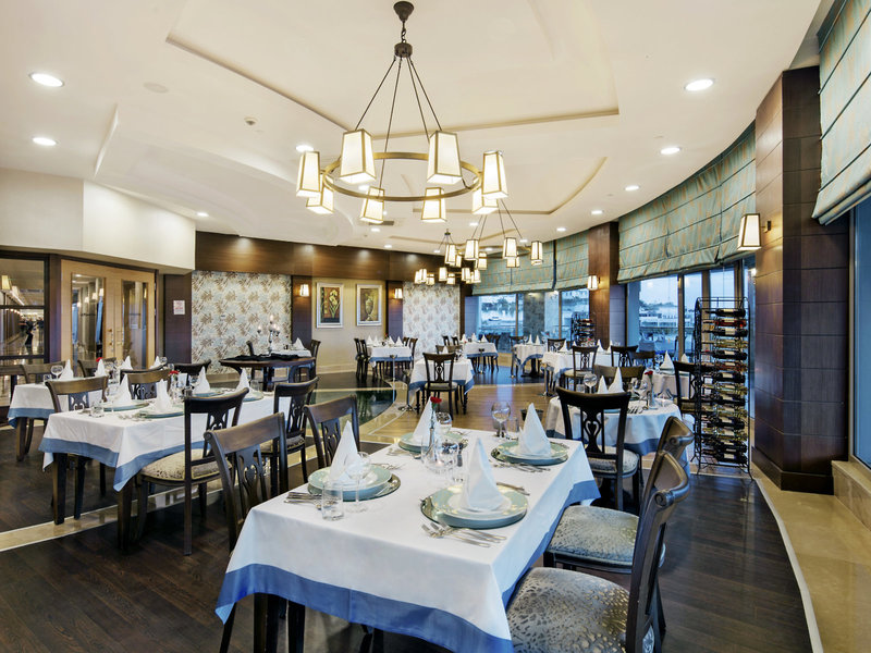 - Hauptrestaurant „Alatau Restaurant“: Küche: international, mediterran, türkisch, saisonale Gerichte, Buffet, bei All Inclusive inklusive, mit Terrasse, angemessene Kleidung erwünscht