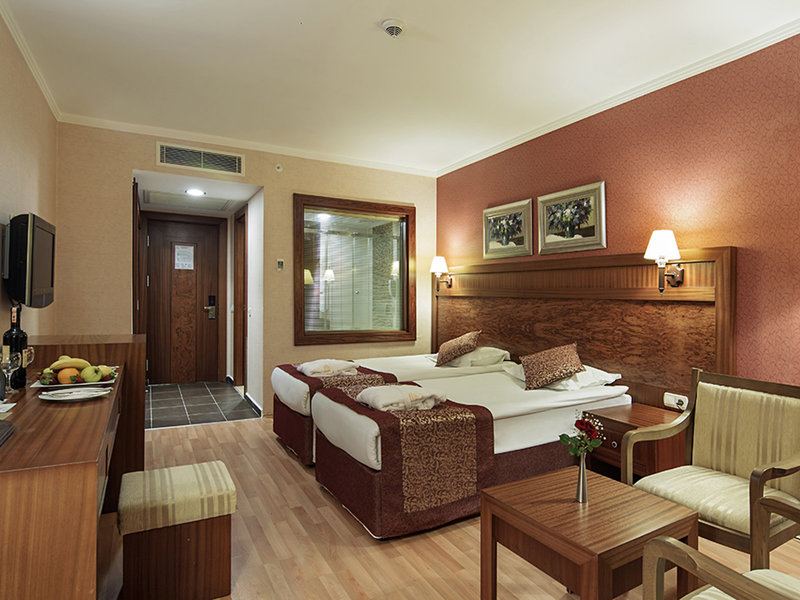 - Double Standard Room Partly Sea View (DZX2), Doppelzimmer, Nichtraucherzimmer, im Hauptgebäude, seitlicher Meerblick, ca. 26 m², Gesamtanzahl der Räume in diesem Zimmertyp: 1, Aufteilung wie folgt: kombiniertes Wohn-/Schlafzimmer, 2 Einzelbetten, 1 Zustellbett, Klimaanlage: ohne Gebühr, zentral gesteuert, Fußboden: Laminat, Safe: ohne Gebühr, Kaffee-/Teezubereiter, Wasserkocher, Minibar: ohne Gebühr, Softdrinks: ohne Gebühr, Wasser: ohne Gebühr, Minibarauffüllung: täglich, Telefon, Internet: WLAN/WiFi: gegen Gebühr, Fernseher: Flatscreen, deutsches Programm, Sat-TV, Roomservice: 24 Stunden, gegen Gebühr, Reinigungsservice: täglich, ohne Gebühr, Badewanne oder Dusche, WC, Bademantel: ohne Gebühr, Slipper: ohne Gebühr, Föhn, Kosmetikspiegel, Balkon: mit Sitzgelegenheit