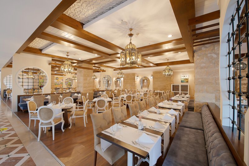 - 6 reštaurácií à la carte: francúzska, turecká, ázijská, stredomorská a mexická kuchyňa, ako aj morské plody