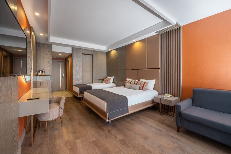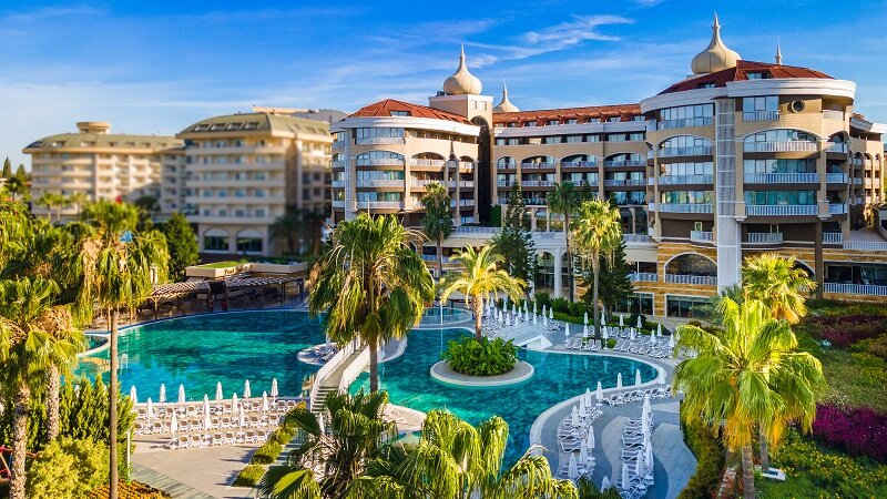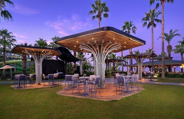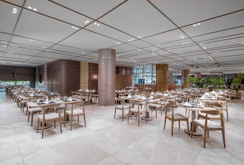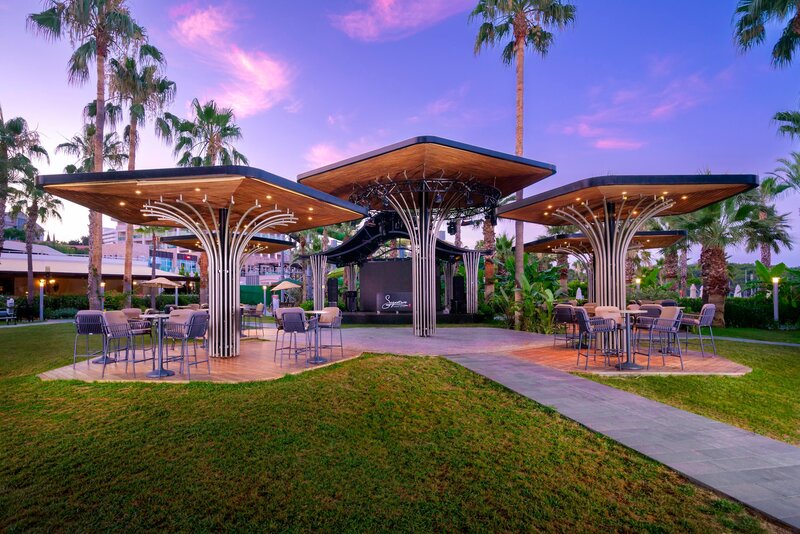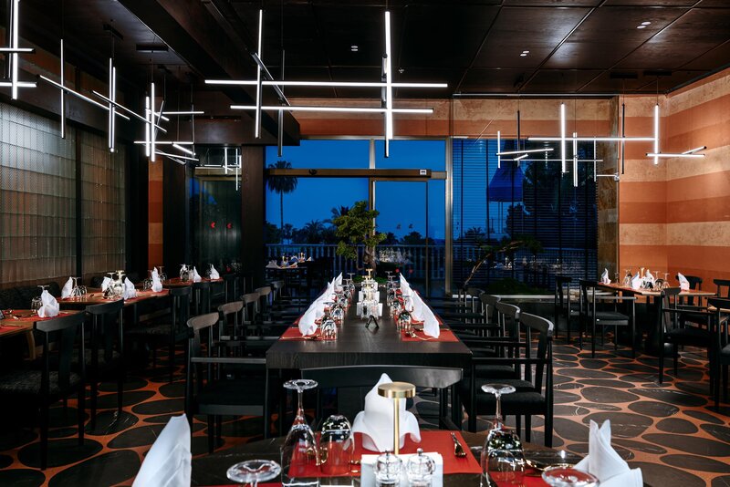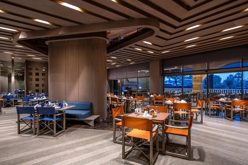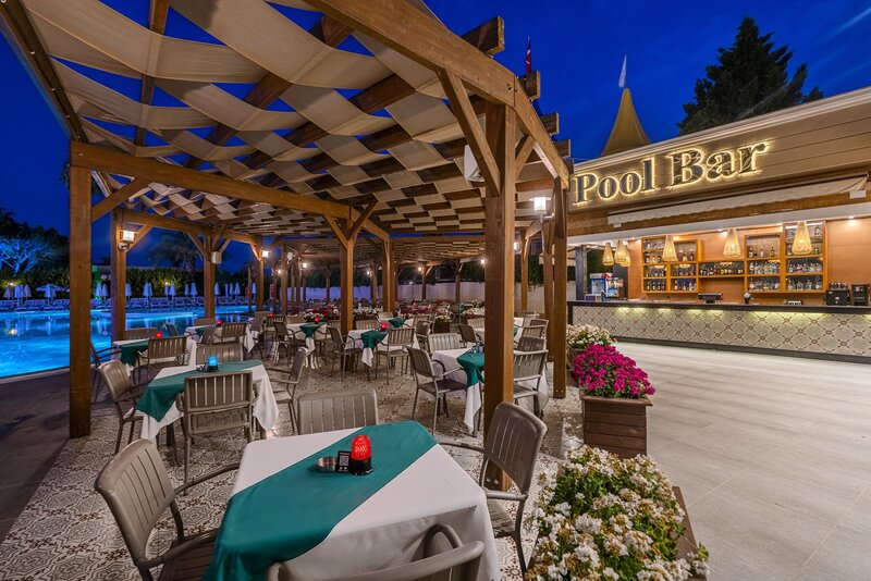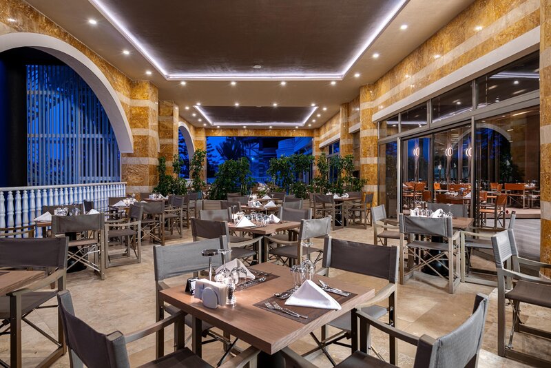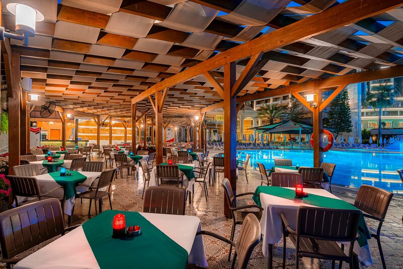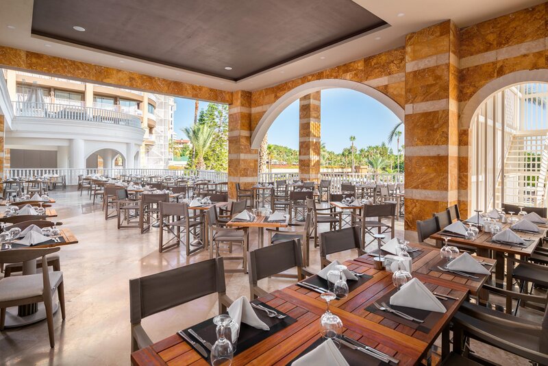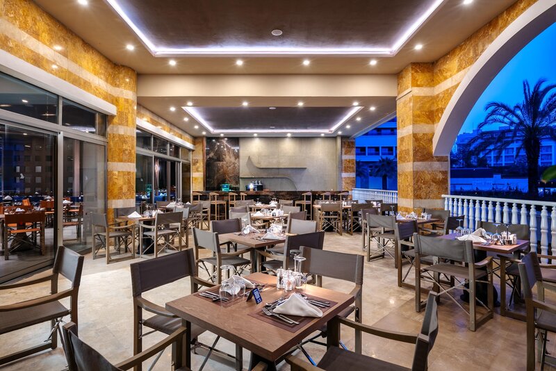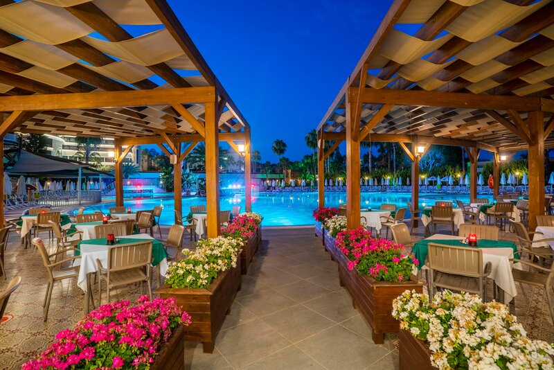 - bufetová reštaurácia s terasou; 3 à la carte reštaurácie (stredomorská, osmanská, ázijská/japonská kuchyňa; 15. máj – 15. október)