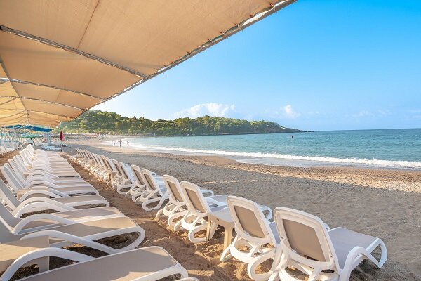 - ca. 200 m langer hoteleigener Abschnitt am steil abfallenden Kies-/Sandstrand