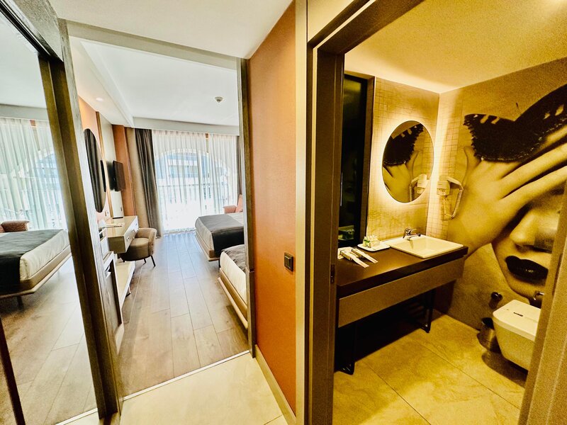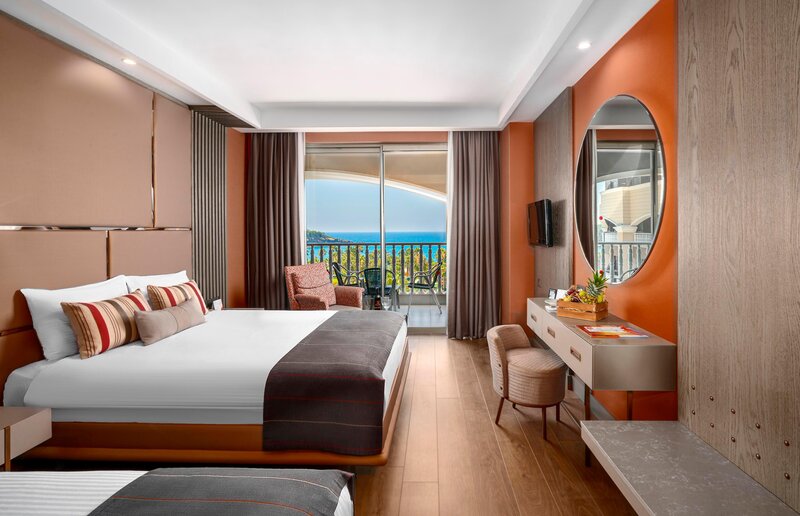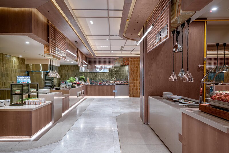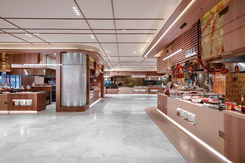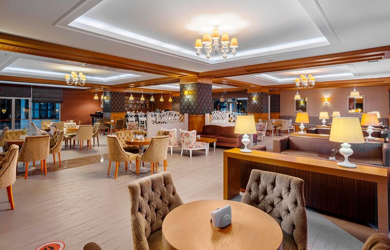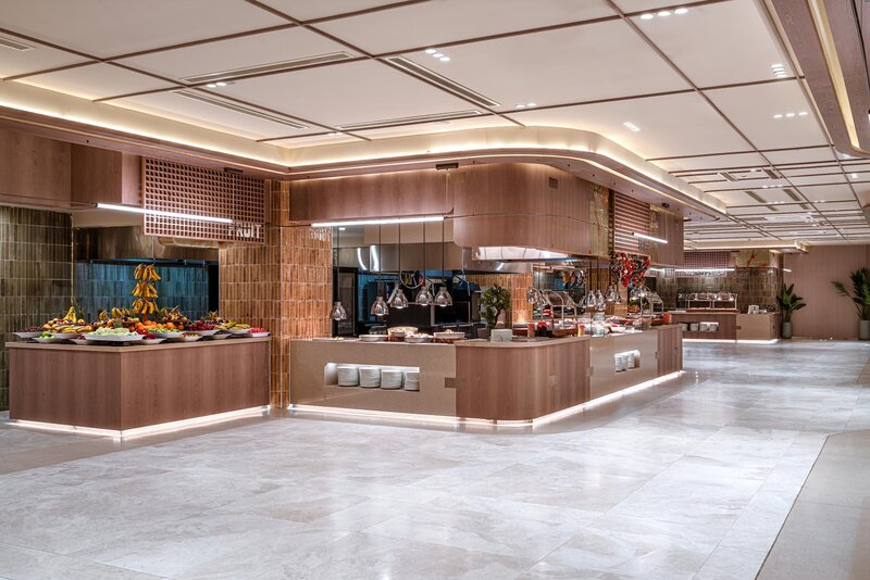 - Buffetrestaurant mit Terrasse; 3 À-la-carte-Restaurants (mediterrane, osmanische, asiatisch/japanische Küche; 15.5. – 15.10.)