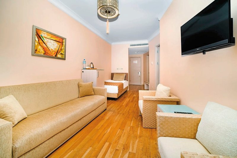 Inšpirovaný seldžuckou architektúrou tu priamo na pláži vznikol očarujúci mix moderného komfortu a tradičného dizajnu. Užite si výhody veľkých kúpeľov a kulinárske špeciality!Vaše výhody: Výnimočná architektúra