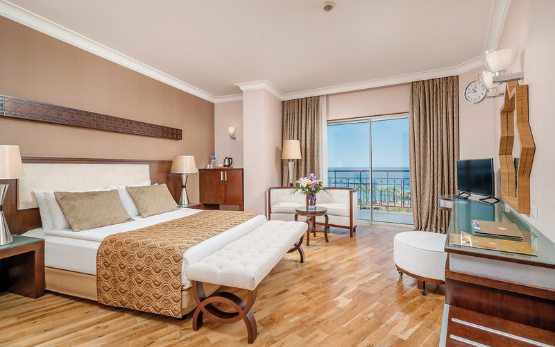 - Rodinná izba, Hlavná budova, Výhľad na more, Nefajčiarska izba, 2 samostatné spálne, Poschodová posteľ, 1 kúpeľňa, Sprcha, WC, Fén, Dlažba, Klimatizácia, Centrálne ovládané, Minibar, Trezor, 2 TV (Satelitná TV), Balkón