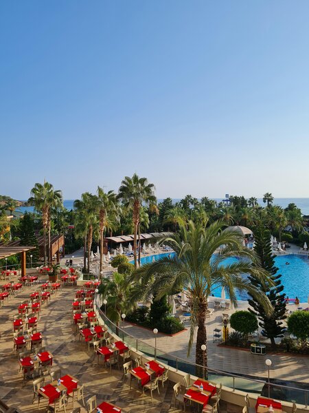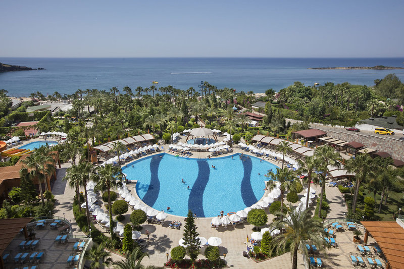 Das Hotel Saphir Resort & Spa befindet sich in der Nähe von Alanya. Reisende mit vtours wohnen hier in modern eingerichteten Gästezimmern. In einer Lagune unmittelbar am flach abfallenden Sand-Kies-Strand gelegen, ist die Hotelanlage ein beliebtes Reiseziel für einen Urlaub mit Kindern. Im Außenbereich lädt ein Swimmingpool mit großen Wasserrutschen zum Baden und Relaxen ein. Sowohl im Poolbereich als auch am Strand stehen den Gästen Liegen und Schirme zur Verfügung. Für sportliche Urlauber gibt es eine Vielzahl an Sport- und Freizeitaktivitäten sowie saisonale Sportanimation. Shoppingliebhaber freuen sich über die nur etwa 500 Meter entfernten Einkaufsmöglichkeiten.