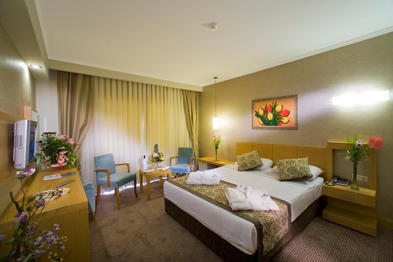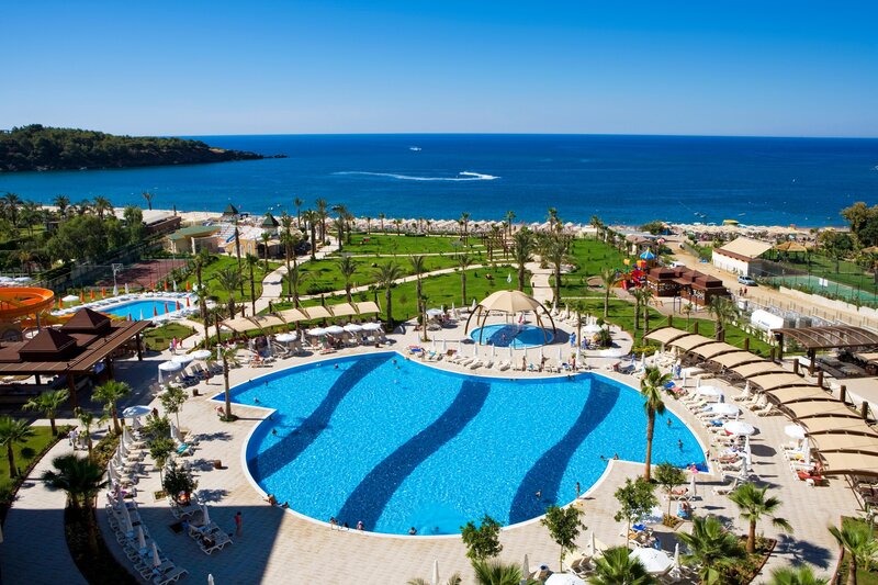 Hotel Saphir Resort & Spa sa nachádza neďaleko Alanye. Cestovatelia s vtours sa tu ubytujú v moderne zariadených izbách. Hotelový komplex, ktorý sa nachádza v lagúne priamo na mierne sa zvažujúcej piesočnato-kamienkovej pláži, je obľúbeným cieľom dovoleniek s deťmi. Vo vonkajšom areáli láka na kúpanie a oddych bazén s veľkými toboganmi. Ležadlá a slnečníky sú hosťom k dispozícii pri bazéne aj na pláži. Pre športovo založených dovolenkárov sú pripravené rôzne športové a voľnočasové aktivity, ako aj sezónna športová zábava. Milovníci nakupovania budú spokojní s nákupnými možnosťami vzdialenými len 500 metrov.
