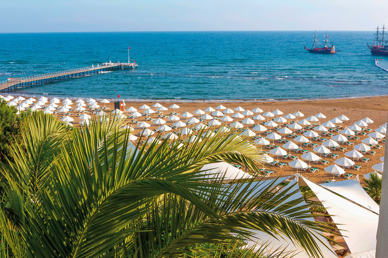 - Sandstrand: flach abfallend, gehört zur Anlage, ca. 200 m lang, Sonnenschirme, Liegen, Cabaña (kostenpflichtig), Strandtuch/Badetuch, Strandservice (ca. 1.4.-31.10.)