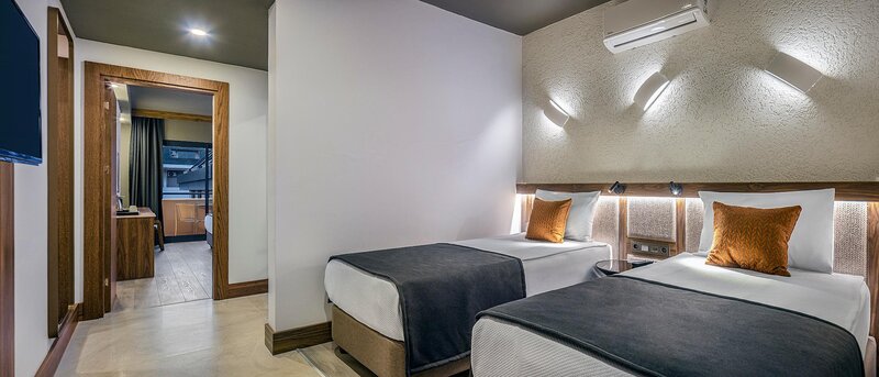 - Zimmerausstattung: Verbindungstüre, Wasserkocher, Telefon, Haartrockner, Minibar (Gegen Gebühr), Zimmersafe (inklusive), WLAN im Zimmer (inklusive), Fernseher (inklusive), Klimaanlage (inklusive, saisonal verfügbar)